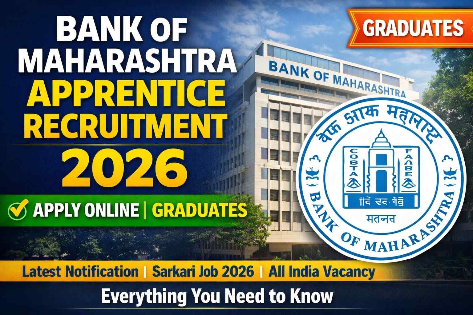 Are you a fresh graduate looking for hands-on experience in the banking sector? The Bank of Maharashtra (BOM) has released its Apprentice Recruitment 2026 notification, offering 600 vacancies across various states and union territories. This one-year apprenticeship program under the Apprentices Act, 1961, provides practical training and a monthly stipend. Applications are currently open, and we’ve compiled all the essential details in an easy-to-read format with tables for quick reference. As of January 18, 2026, the application process is underway with no reported changes or extensions.