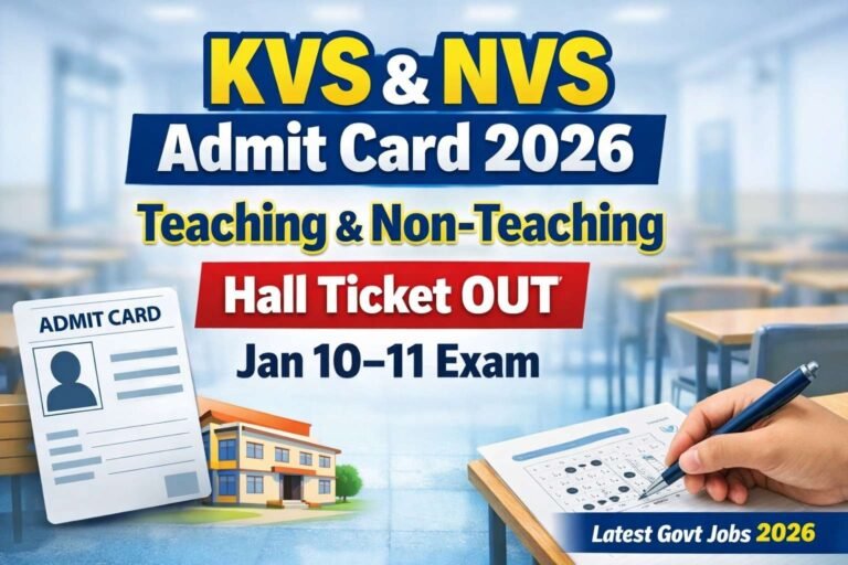 KVS NVS Teaching & Non-Teaching Admit Card 2026: Download Hall Ticket for January 10-11 Exams
