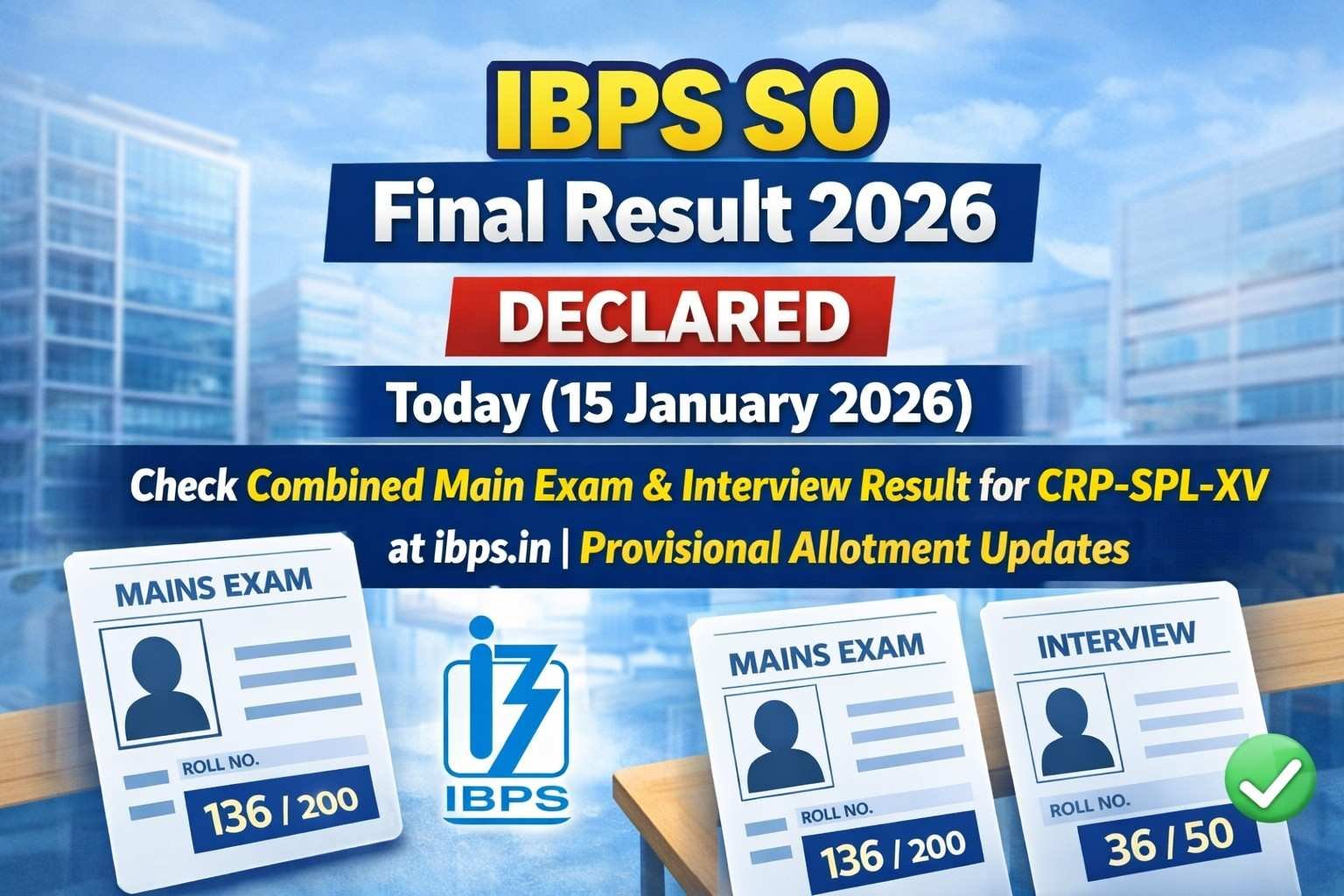 The Institute of Banking Personnel Selection (IBPS) has officially released the Combined Result for Main Exam & Interview (Final Result/Provisional Allotment) under CRP SPL-XV (Common Recruitment Process for Specialist Officers XV) today, 15 January 2026. This marks the culmination of the entire selection process for the 2026-27 vacancies in various Specialist Officer posts across participating public sector banks.